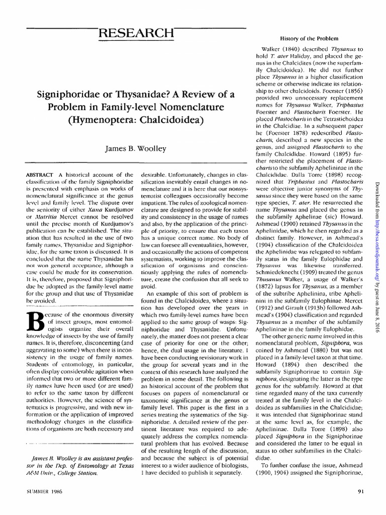 Woolley 1986 Signiphoridae | PDF | Genus | Biological Nomenclature