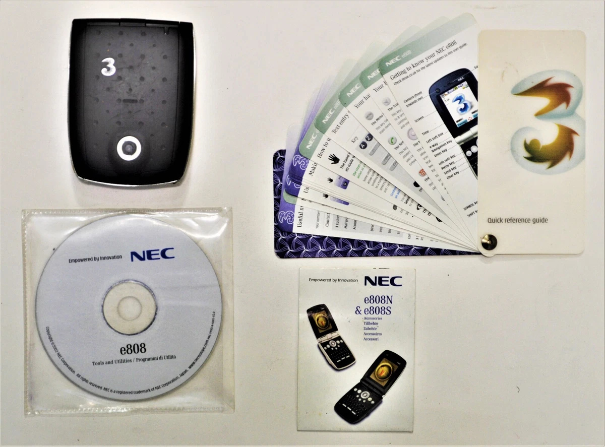 Vintage/Retro (WORKING) NEC E808 Black 3G QWERTY Flip Phone Rare