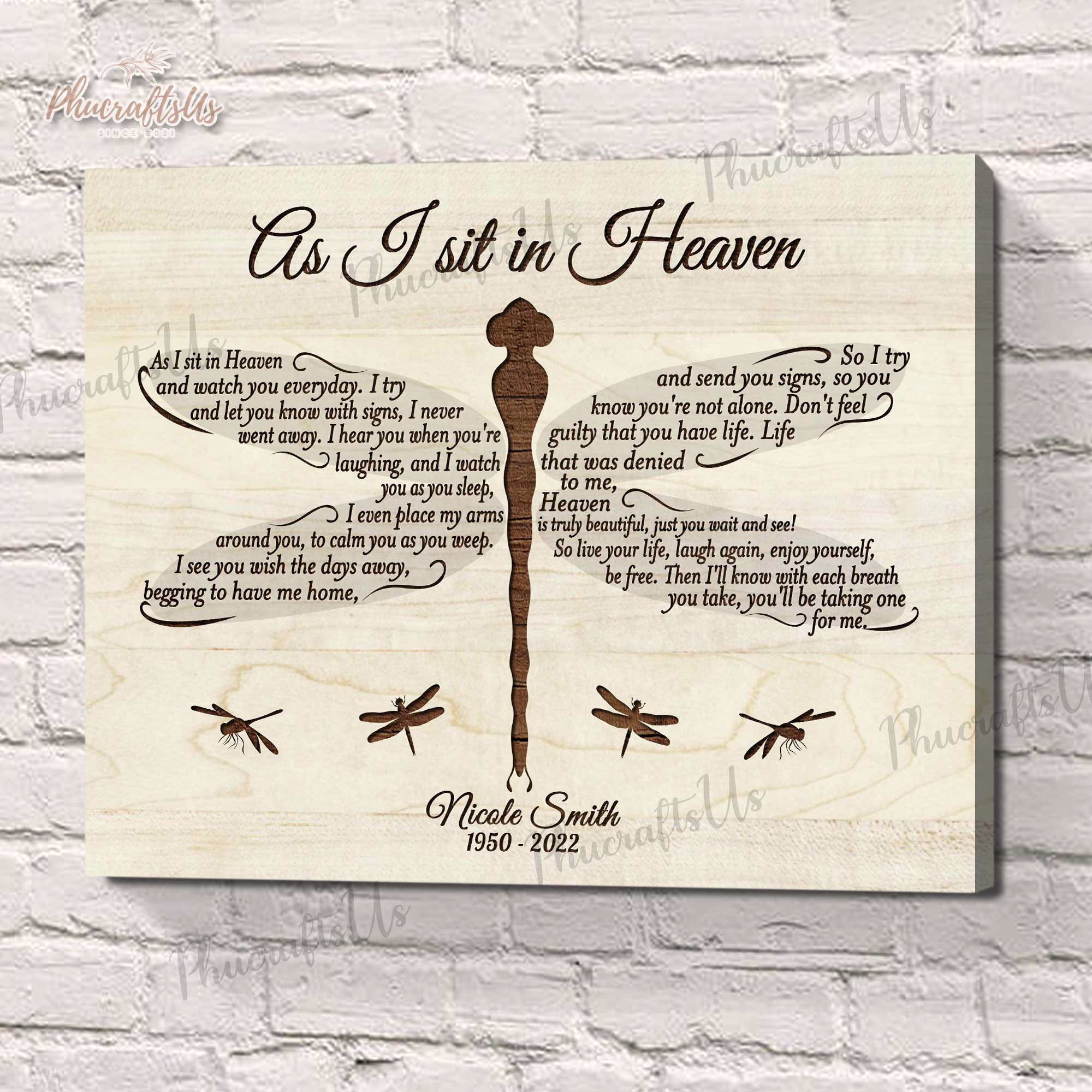 As I Sit in Heaven Dragonfly Memorial Gifts, Custom Canvas Wall